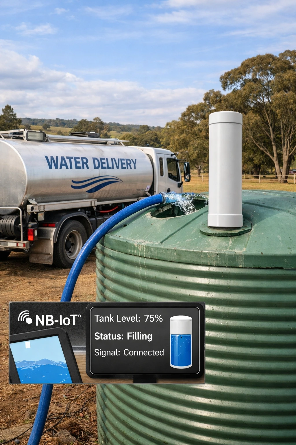If your mobile phone has coverage, your tank sensor will too. NB-IoT has longer range than a mobile phone due to lower bandwidth and signal requirements for